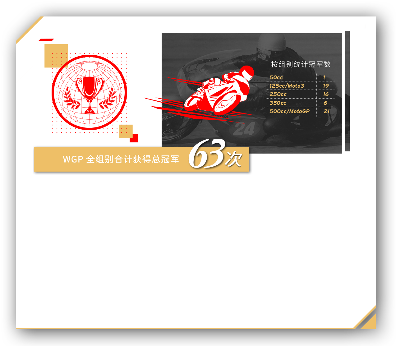 在WGP的范畴内举办最多的比赛当属曼岛TT相关赛事。1961年首次获得125cc组别冠军与2019年Moto3组别赛车的平均时速差为30.4km/h。技术的积累与进步最终呈现在赛车的速度上。Honda赛车也会继续变得更强、更快。