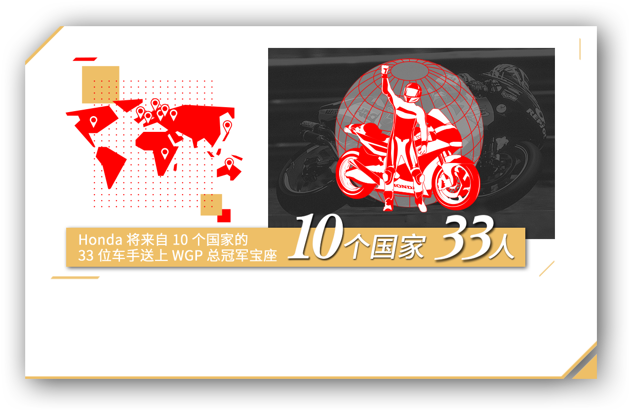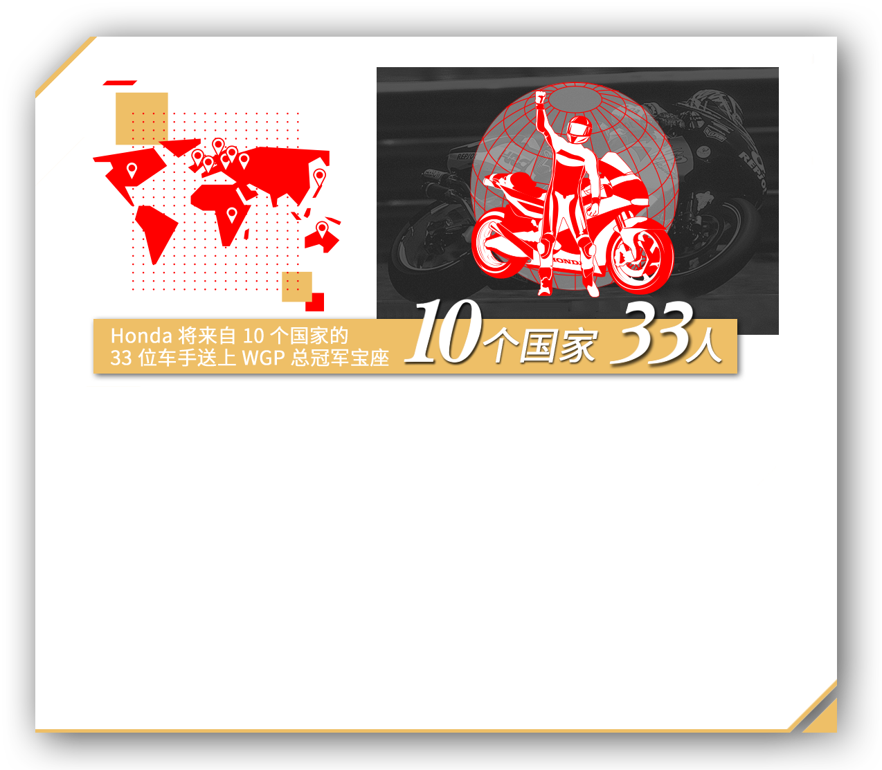 自1961年赢得第一场胜利以来,Honda与优秀车手们,多次制霸WGP。