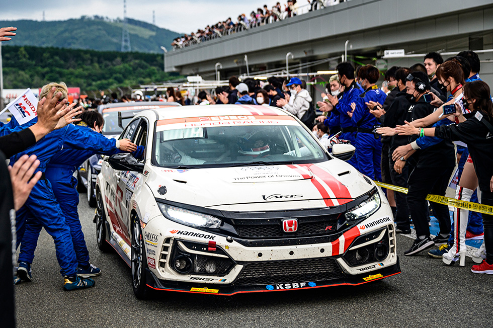 参赛车型中偶尔能看到一些Honda的汽车。其中有一辆运动车型,那便是现款的“CIVIC TYPE R”(以下简称思域TYPE R)。