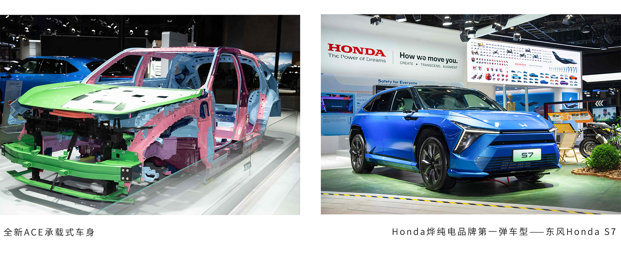 此外,本次Honda展台还展出了荣获“2024中国十佳车身”大奖的全新ACE承载式车身,该车身设计秉承Honda的“共存安全”理念,在保护自身的同时,还能够降低对对方车辆带来的冲击,实现双向车辆的安全保护。