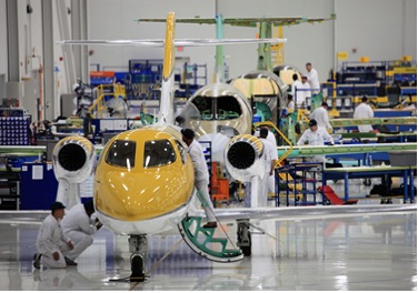 HondaJet的生产线采用了各种最新生产技术,例如使用移动终端的IT组装工序管理系统、提升机体涂装质量并实现标准化的多种涂料混合系统、在最佳时机向各道工序的指定位置运送零部件的零部件自动搬运系统等等。按照计划,公司今后将分阶段强化HondaJet的量产体制。