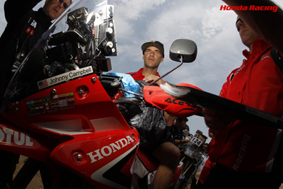 约翰尼・坎贝尔车手:“美国测试结束后我们又参加了很多测试。赛车整体性能(底盘、发动机、悬挂)都得到改良,我们对CRF450 RALLY非常满意。 能参加TEAM HRC如此重要的活动,大家的注意力非常集中,热情也越来越高涨。”