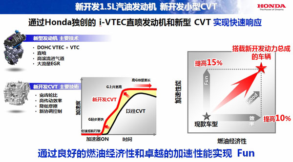 全新1.5L发动机同样采用直喷系统,新开发小型CVT凭借反应灵敏的线性加速实现了极高的驾驶乐趣,这套动力总成系统将在飞度级别的新车型上搭载使用,可以获得远超于以往车型的顶级环保性能和驾驶乐趣。
