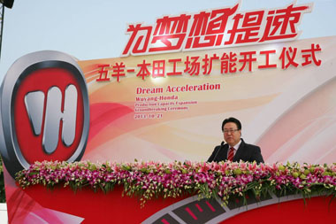 2013年10月21日,Honda合资公司五羊-本田摩托车(广州)有限公司在广东增城举行了工厂扩能开工仪式。Honda中国本部长仓石诚司、熊本工厂长渡边胜资以及二轮本部长青山真二和增城市市委市政府以及广汽集团领导,与五羊-本田公司全国经销商、供应商、员工代表和媒体代表等350多人参加了现场仪式,共襄盛举。
