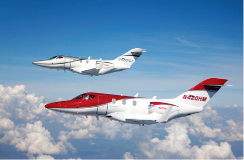 HondaJet飞行试验使用的1号机(银色)和3号机(红色)