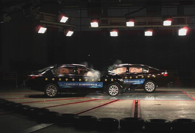 2014年10月31日,广汽本田汽车有限公司在天津中国汽车技术研究中心新落成的碰撞试验室公开举行了国内首次车对车15°角小重叠率高速碰撞试验,在全球9个NCAP机构代表、国内汽车安全专家以及全国两百家媒体代表的共同见证下,两辆第九代雅阁分别以56km/h的速度,呈15°斜角以25%重叠率进行碰撞。这样的试验条件,可谓史上最严苛,对车辆安全性是严峻的考验。试验后对假人伤害值的分析显示,碰撞过程中试验假人得到很好的保护,各项指标均远远低于基准值要求,最大伤害值也仅为基准值的60%左右。国内首次公开车对车15°角小重叠率高速碰撞试验获得了圆满成功。