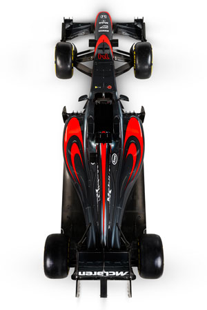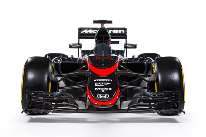 McLaren-Honda的全新外观采用了全新设计的着色系统,该着色系统以石墨灰为基调,同时又进一步强调了McLaren传统的火箭红速度标志,充满运动感且极具攻击性。