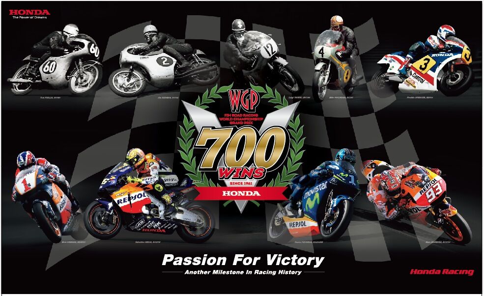 1954年,Honda创始人本田宗一郎宣布参战当时的顶级摩托车赛事曼岛TT,目标是“实现成为世界第一的梦想”。在用了五年时间开发赛车之后,Honda成为第一家参与曼岛TT大赛的日本摩托车生产厂商。第二年1960年,Honda开始参加125cc和250cc组别的国际摩联GP大赛,接下来在1961年,汤姆菲利斯赢得赛季开幕站西班牙GP大赛冠军,开始了Honda迈向700胜的第一步。