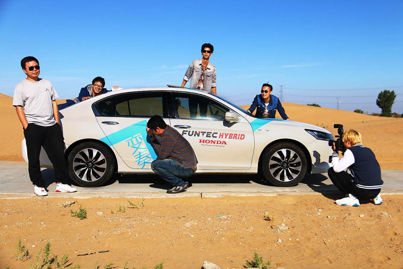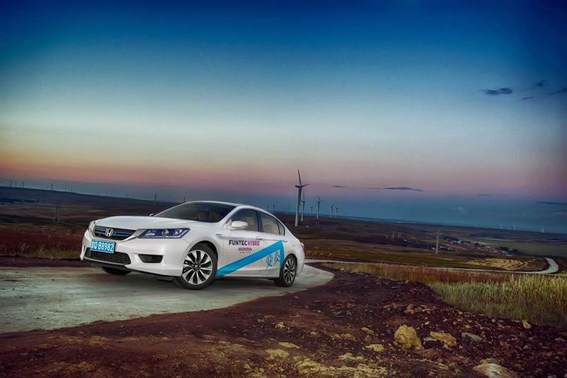 2015年9月24日,Honda FUNTEC HYBRID“一箱油,Go!”城市间挑战赛在塞上古城银川迎来冲刺高潮。由汽车头条、爱卡汽车、蚂蜂窝、蜂鸟网及本田车主组成的五支FUNTEC HYBRID车队,驾驶搭载高效节能的双电机混合动力系统i-MMD的混合动力版雅阁(美版),一箱油(60L)穿越北京至银川的千里画廊,从四面八方汇聚凤凰城。