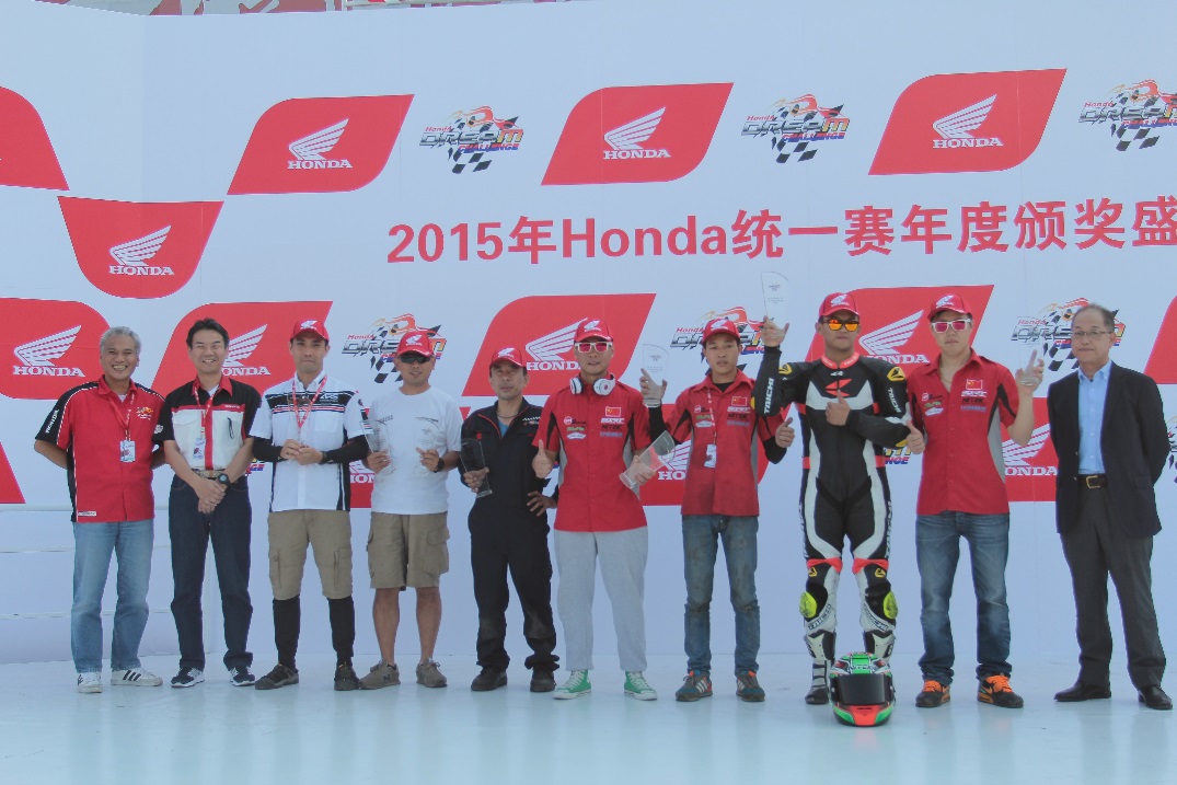 赛后,Honda举办了2015年Honda统一赛年度颁奖盛会。根据全年上海三站的累计积分总和,揭晓了年度积分榜前三名车手及冠军车队得主名单。本赛季,在Honda 150cc统一赛中,A组邬吉青以52分获得年度冠军,田口功介和APIS Racing的猪狩圭助分别获得第二和第三,年度冠军车队则由上海51赛车队获得;而B组的年度冠军由美女车手陈玲以54分夺得,夺标赛车队的沈小轶获得第二,第三名则由马亚光和曹余鹏并列获得;而夺标赛车队获得年度冠军车队。在Honda 300cc统一赛中,邬吉青获得年度冠军,李颀珅和新大洲本田梦之队的章文俊分别获得第二和第三;上海51赛车队凭借年度综合实力,再次获得年度冠军车队。Honda向得奖车手颁发了奖杯与进口骑行服,并向冠军车队颁发了奖杯和明年免费参加Honda统一赛的邀请函。