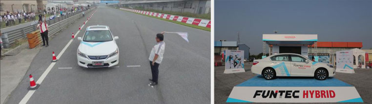 做为Honda先进环保理念的延伸和具体体现,搭载了高效i-MMD混合动力系统的混动版雅阁也亮相大赛,并现场开启“一箱油GO”肇庆站的城际行驶里程测试挑战。世界这么大,一箱油究竟能走多远?混动版雅阁在该挑战项目银川站给出的最远惊人成绩为1566公里,这次,它又以一箱油1714公里的测试纪录(该成绩为换算值),再次创下全新记录,向消费者传递、展现了FUNTEC HYBRID “更快、更顺、更远”的独有技术优势。Honda FUNTEC HYBRID出色的燃油效率是Honda多年不断挑战和创新的成果,该先进环保技术和产品将从明年通过国产导入中国市场,旨在为中国消费者带来环保和驾驶乐趣兼顾的移动生活。
