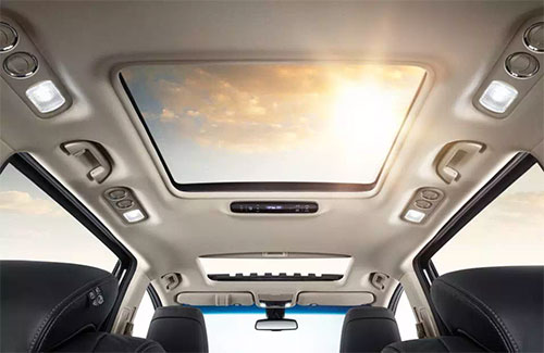 车内后排还配有触屏控制面板,天窗遮阳帘、空调温度、显示屏亮度都可在此调节。全系标配的电动双天窗不仅使车内得到充足的光线,视野也更为开阔。