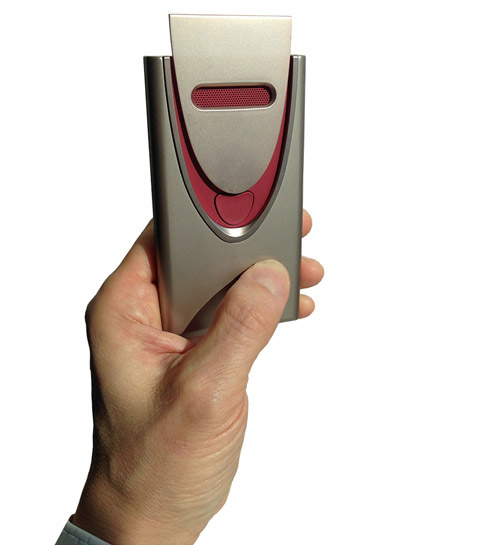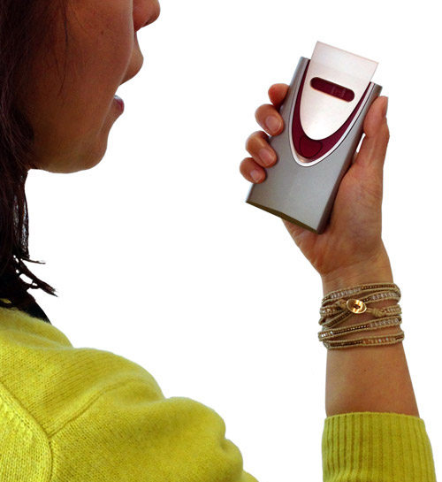 开发出检测人类的特有的呼气饱和水蒸气的感应技术。该传感器采用酸化物绝缘体材料内电极的构造。当驾驶员向传感器吹气后,呼气中的水蒸气会附着在酸化物绝缘体材料上,使电极之间的电流发生变化,利用这一现象,可以在几秒钟内识别出呼气是否来自人。电极的形状为微细的梳齿,通过使电极之间的距离缩短,提高了传感器的灵敏度。感应装置的小型化,电力消耗的减少,该检测仪可使用电池驱动,在任何地点都可以进行检测。