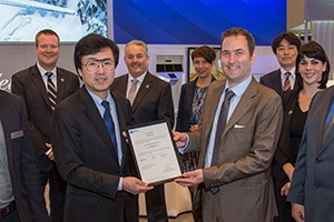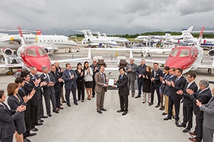 HACI社长藤野道格从EASA的高性能飞机部门负责人Steven Higgins先生处接受型式认证书时表示,“从EASA获得型式认证,意味着HondaJet已经符合最严格的欧洲安全标准。在欧洲这一重要市场获得型式认证,欧洲市场开始接受HondaJet的加入,这让我十分高兴。今后,我们一定会让欧洲的客户体验HondaJet的先进功能。”