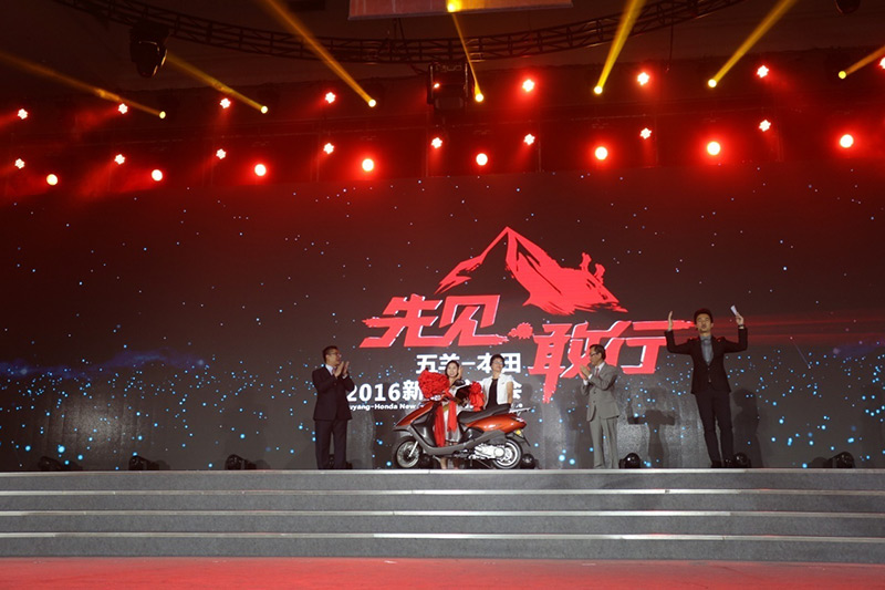 2016年6月24日,五羊-本田召开了以“先见•敢行”为主题的2016年新品发布会。五羊-本田,选择在90后00后新生代消费群刚刚崛起,就重磅推出2款专注于年轻人文化的新车型,以更年轻、更与时俱进的视角,率先改变、敢于改变,展现出大企业少有的跨越超卓的果敢,势必引领二轮车行业在新的需求格局中闯出新天地态势,让行业再次看到了阔别已久的曙光。