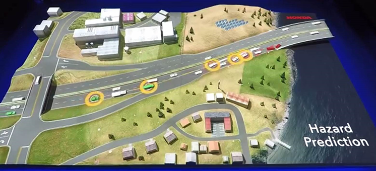 Safe Swarm是Honda从自然界获得灵感提出的利用互联汽车技术※4(网络连接型和车车之间通信汽车技术)让交通流变得像鱼群活动一样顺畅的方案。Honda力求通过车车之间通信共享前方路况和障碍物信息,分析汽车并线和变线时的车速,辅助汽车在恰当的车速下并线和变线,从而防止交通堵塞,实现让本车乃至整个交通流都变得安全、顺畅的交通社会。