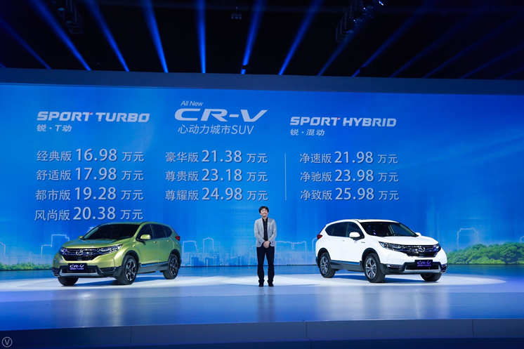 7月9日,东风 Honda全新一代CR-V在极具生活气息的成都心动上市,同时推出SPORT TURBO(锐·T动)和SPORT HYBRID(锐·混动)两种版本共10款车型。其中:全新一代CR-V 锐·T动共推出7款车型,市场指导价16.98-24.98万元;全新一代CR-V 锐·混动为全球首次上市,共推出3款车型,市场指导价21.98-25.98万元。