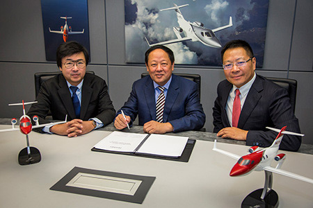 HACI指定宏信通用航空有限公司(Honsan General Aviation Co., Ltd.)为经销商,负责HondaJet在中国大陆以及香港、澳门的销售和各种服务工作,并计划将据点设置于广州白云国际机场内新建成的商务喷气机用候机楼内。