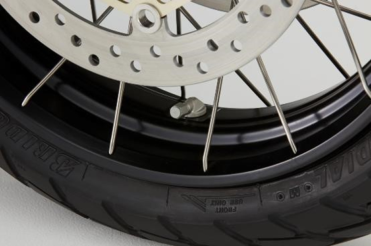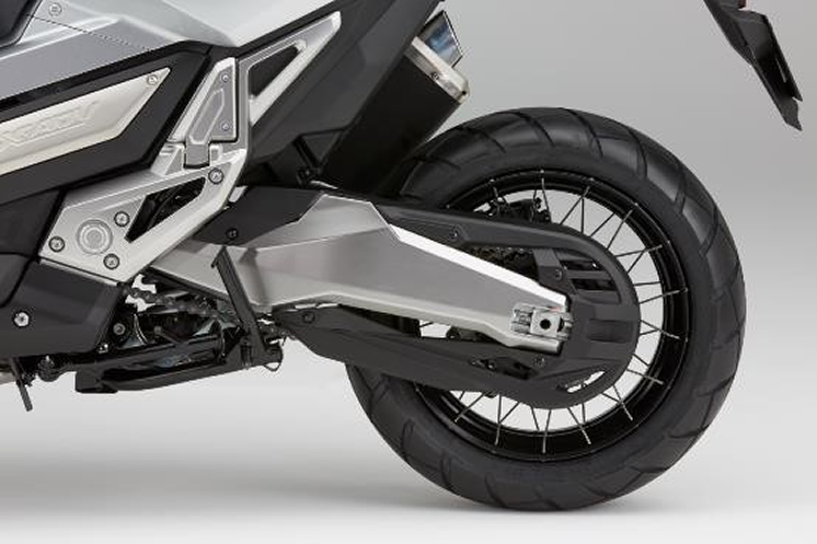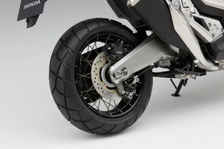 X-ADV在制动系统上搭载了径向四活塞卡钳、双碟,标配ABS系统。前后轮毂采用了无内胎型辐条轻量化铝制轮毂。前17英寸后15英寸的块状菠萝胎纹,极具探险风格。