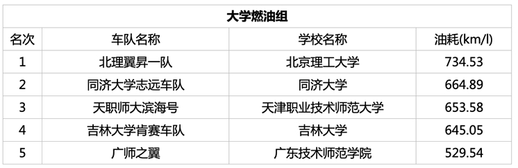 此外,大学、专科学校的最佳进步奖由上海工程技术大学的龙腾车队(燃油)获得,车队通过技术的改进,成绩较去年大幅提升;企业的最佳进步奖由重庆登科金属制品有限公司的七星瓢虫队(燃油)获得。最佳新秀奖由福建工程学院的苍霞GS车队(燃油)和苍霞EV车队(EV)摘得。通过微信H5投票评出的最佳人气王,则分别被太原科技大学的NewMaker-Legend车队(大学、专科学校最佳人气)、广汽本田汽车有限公司的梦想EV1车队(企业最佳人气)囊括。
