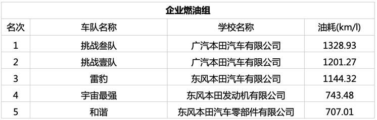 11月4日企业燃油冠军-广汽本田汽车有限公司挑战叁队