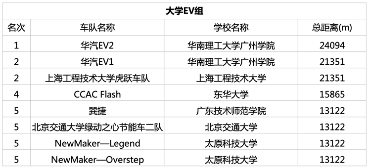 在三天的比赛中,共有来自全国各大高校、Honda关联企业及媒体的159支车队,在燃油车和电动车的两个级别四个组别中进行了激烈角逐。最终11月3日燃油车和电动车级别的冠军分别由同济大学志远二队和上海工程技术大学虎跃车队获得;11月4日燃油车级别的桂冠由北京理工大学北理翼昇一队和广汽本田汽车有限公司挑战叁队,电动车级别桂冠由华南理工大学广州学院华汽EV2队和京滨电子装置研究开发(上海)有限公司京滨青春车队斩获。