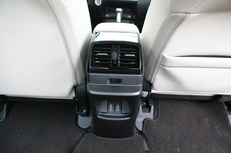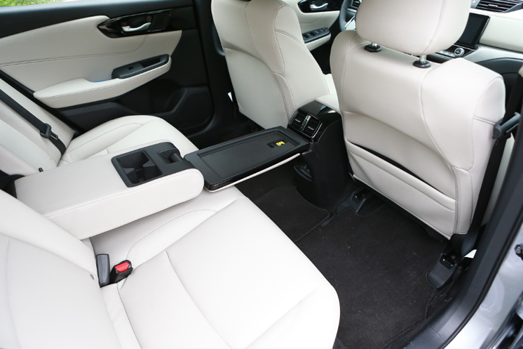 后排座椅采用柔软高弹力的材料,乘坐舒适;后排座椅中间独创性的折叠式小桌板,方便实用,延展生活空间;越级配备的后排空调出风口、12V电源接口和双USB接口,让后排乘员舒享便捷。隐藏在中央扶手后的储物通道,打开后与后备厢直接相连,提供极大便利。