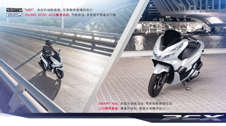 为满足追求高品质生活的高端用户需求,Honda PCX将在华引入150cc排量,同时由五羊-本田摩托(广州)有限公司、新大洲本田摩托有限公司生产和销售。Honda PCX融入了Honda在70多年里积累下的摩托车领域的先进技术和研发经验,不断追求进化。在外观设计上,追求强劲动力感与现代美感的完美融合,同时兼具骑行的乐趣与低油耗,为用户提供更加舒适的出行体验。