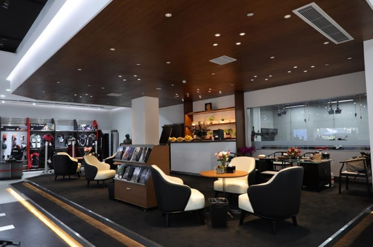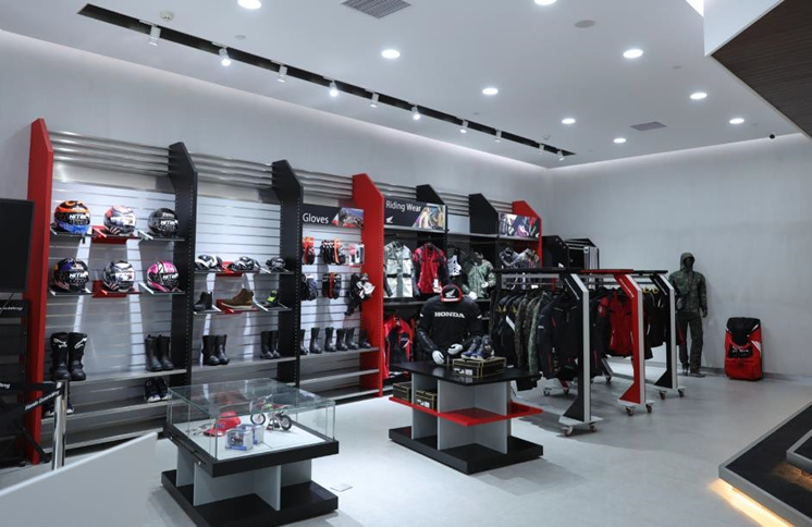 杭州店总面积1500平方米,以「纵享都市感、时尚感,‘乐享骑行生活’的Honda Road」为设计理念。整店设计风格引人遐想,给人以驰骋于赛道之感。秉承着「让顾客体验Honda摩托车世界」的梦想、体现Honda独有品牌文化—“梦想”、“技术”、“信赖”。杭州店设有七大区域:室内有车型展示区、骑行装备展示区、客户活动区、休息洽谈区、售后服务区,室外有试驾区和客户停车区。