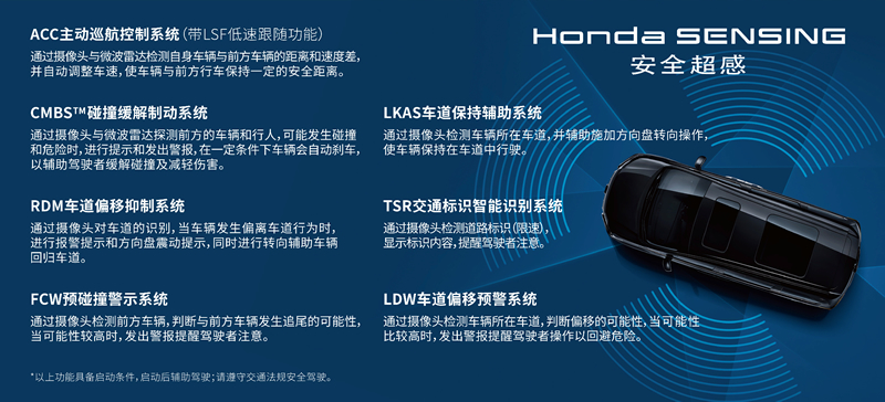 新车继续搭载Honda SENSING安全超感系统,全方位守护驾乘人员安全。值得一提的是,全新艾力绅在安全性上更进一步,新增CTM后视动态提醒功能,有效降低行车风险,让用户安享款待。