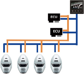 它最大的亮点在于搭载电子操控系统(DBW),一个遥控杆最多可以控制4台船外机,使操作更加便捷,为用户带来舒适愉快的驾驶体验。同时,将通信线路设置为Honda CAN线和NMEA 2000线2个系统,大大提高了船外机的可靠性,保障航行安全。