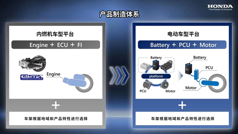 Honda将基于内燃机时代车型平台所积累的具有竞争力的产品制造经验,研发并推广搭载电动车三大核心零部件(电池、PCU、电机)的电动二轮车专用平台。以高效率的产品创新满足客户需求,让电动车同样能够以亲民的价格提供“移动的喜悦”。