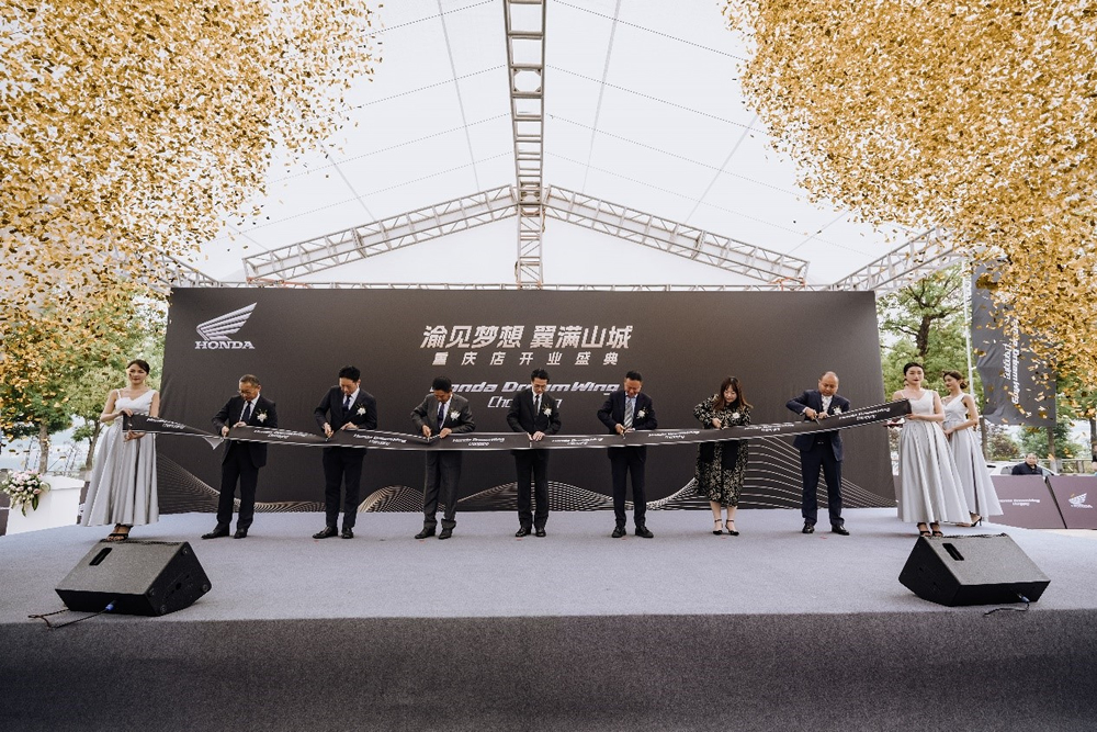 本田技研工业(中国)投资有限公司上海分公司摩托车中心所长尾形淳史, Honda DreamWing重庆店董事长刘锐、众多媒体人士等300余人出席了盛大的新店开业仪式。