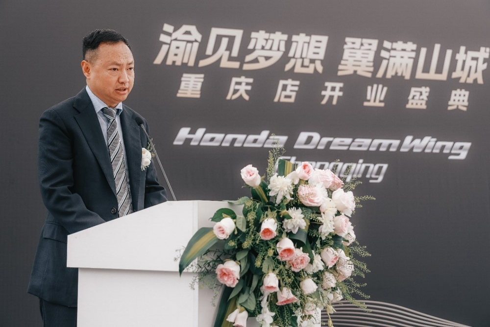 Honda DreamWing重庆店董事长刘锐在致辞中说:“Honda是世界知名的摩托车生产厂家,从1948年开始生产摩托车以来,已经有75年的历史,一直秉承为顾客提供超越期待的感动。Honda通过提供优质的产品和传递骑行文化,与顾客建立稳固的信赖关系,给顾客提供全新的生活体验,希望顾客以拥有Honda摩托车而感到自豪。
