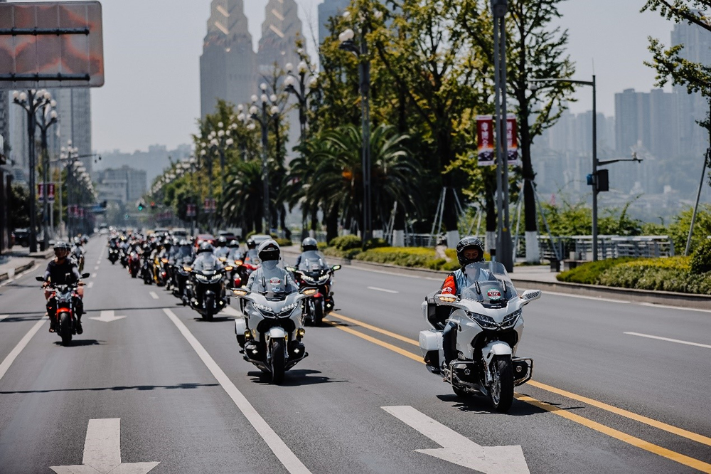 此外,Honda DreamWing重庆品牌特约店还开展了“2023 Honda翼起释FUN骑士汇”活动,为用户提供了一次非比寻常的骑行体验。本次活动,邀请了八十余名Honda用户组成骑行队伍,一路骑行至重庆摩展展会现场。还邀请了资深媒体朋友现场分享活动感悟,与众多摩托车爱好者齐聚Honda Motorcycle展台,深度交流骑行心得,一起畅聊骑行乐趣。同时,本田技研工业(中国)投资有限公司执行副总经理 尾形淳史先生,以及Honda DreamWing重庆店董事长 刘锐先生也在现场发表了讲话,希望此次活动的开展能让用户充分感受到Honda摩托车带来的多样化FUN趣骑行生活。
