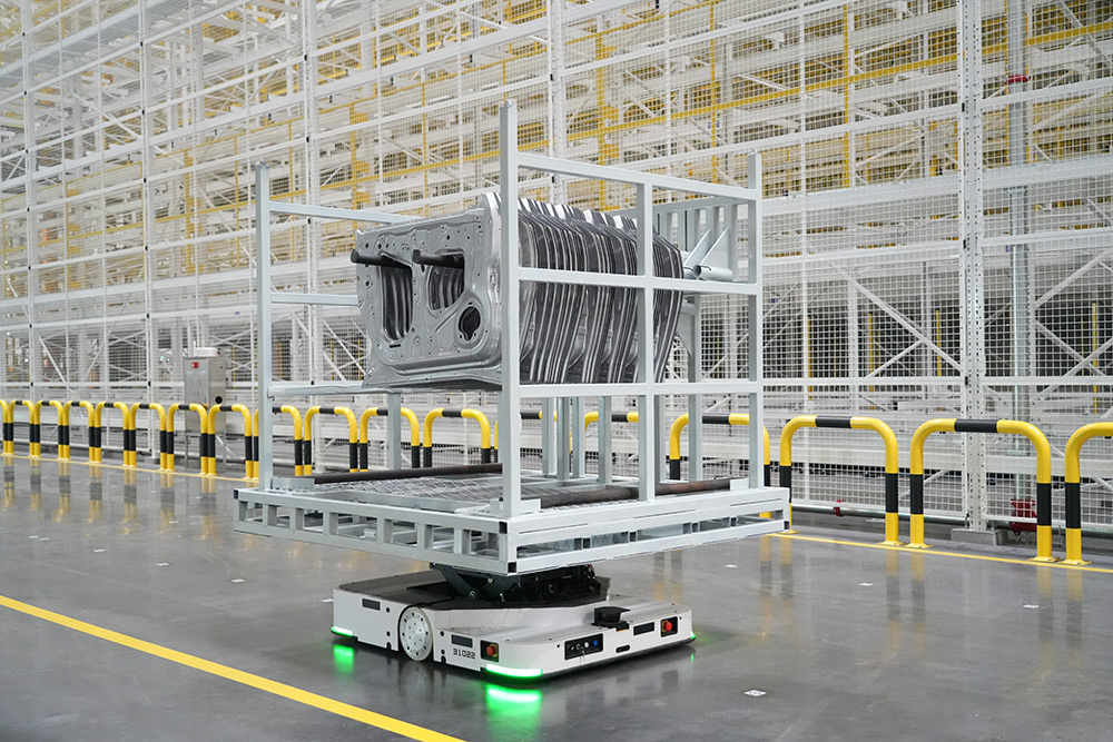 广汽Honda开发区新能源工厂通过四大车间深度导入智能化设备,实现全流程智能化生产,打造先进、高品质的新能源产品。冲压车间采用全伺服生产线,最快3.75秒就生产一个/一对冲压零件,零件生产完成后由机器人完成100%自动装箱,并通过AGV将冲压件准确运送到智能立体仓库。该仓库有7层楼高、约6.5个篮球场大,通过与生产系统的智能对接,可完成零件自动出库及AGV自动配送,实现从冲压线末到焊装车间100%自动化无人物流。