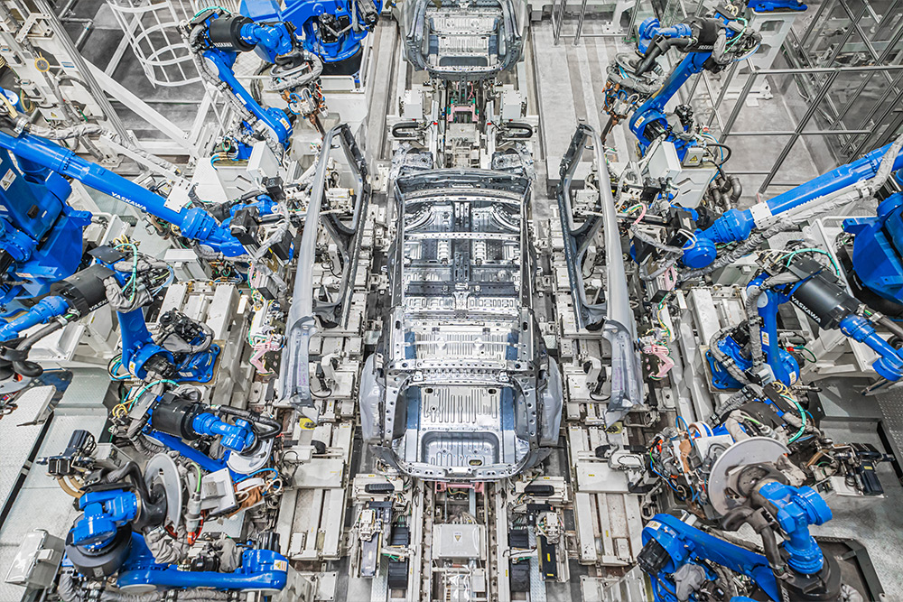 焊装车间大规模应用高速机器人,实现焊接100%自动化,导入AGV设备实现运输100%自动化,采用视觉引导取件技术实现大中部品100%自动取件安装,并应用行业首创的焊接强度AI检测,相当于为汽车“拍CT”,360°无死角透视车身,确保车身焊点100%合格;涂装车间采用行业先进的定量机和喷枪系统实现100%全车自动涂胶,结合视觉定位系统,打胶精度达到0.5mm;总装车间采用高端智造装配工艺,整体自动化率近30%,导入多项高效自动化项目,如机器人集约阵列无人化全自动分装线、高精度三维视觉定位大物总成自动移载及合装、超小物精细化自动装配等,经过一系列复杂有序的操作,各种零部件被精准地组装在一起。