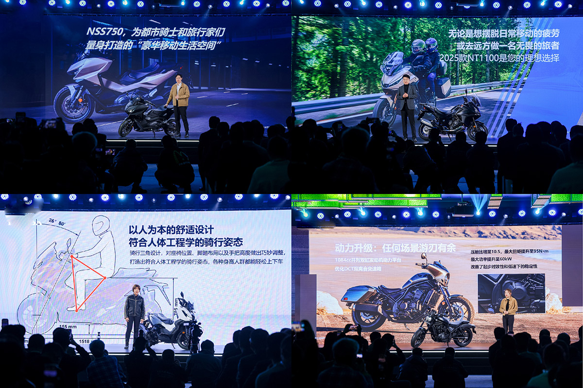 作为2025年合资新公司成立的开篇之作,本次大会上隆重发布了全新的【城市探险】车型ADV350,以及全面升级的2025款NT1100、CM1100和NSS750,为中国的摩托车爱好者带来了期待与惊喜。